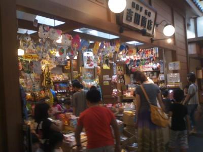セントレア4Fのショッピング街「ちょうちん横丁」で一番驚かされたお店がこちらで、かつてよく普通の町中に見られたような駄菓子屋さんが、懐かしい風情の中で再現さている感じの店舗でした。勿論駄菓子がメイン商品なのでお値段も安いものが多く、観光客のみならず、見送りや出迎えでやって来た地元の方も気軽に立ち寄っている雰囲気でした。また少額でお買い物できるので、余った日本円を使い切りたい、という感じの外国人観光客の姿も多く見られました。