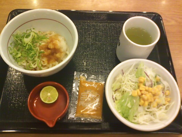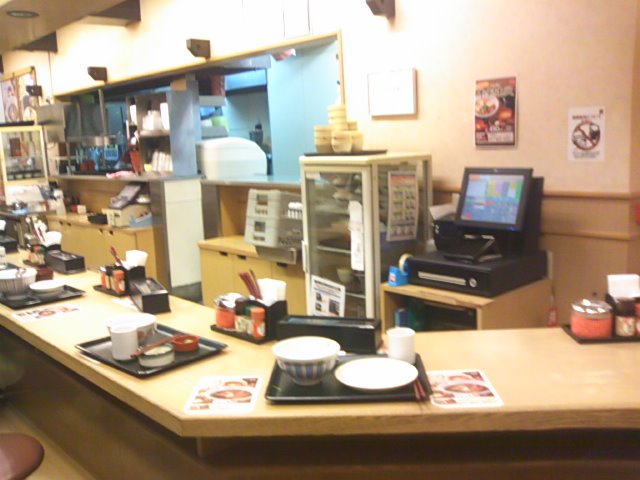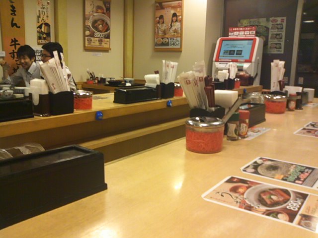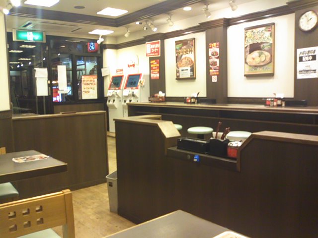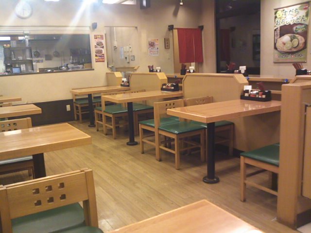北海道内のなか卯店舗の中でもここは結構客席が広いなという印象を受ける店舗でした。カウンター席を環状に配して、その中央部に対面シートがあるという感じのレイアウトで、おひとり様でもご家族でも用途に応じて席が選べるのが良い店舗でした。
