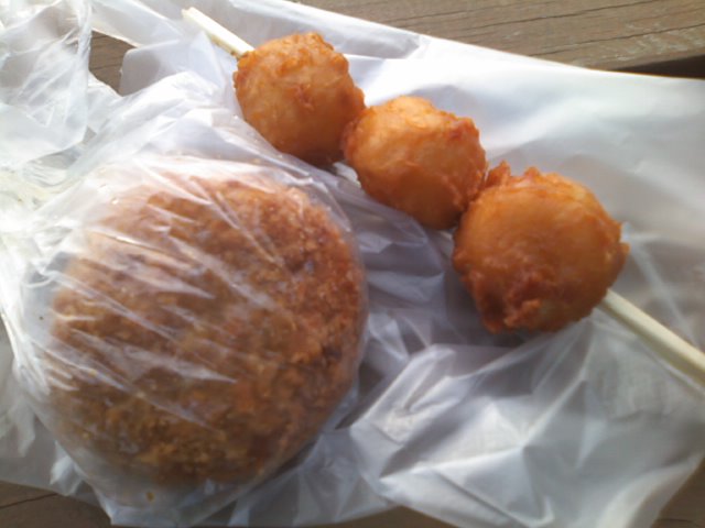 小清水町はジャガイモの産地としても知られている町ですが、こちらのお店では地場産の馬鈴薯をふんだんに使用したコロッケや揚げ芋が販売されています。お総菜コーナーに並ぶ色々な商品の中で一番人気は山わさびのコロッケ。一つ180円とちょっと高めですが、他では味わえない美味しさのコロッケでした。揚げ芋も合わせて購入しましたが普通に美味しかったです。