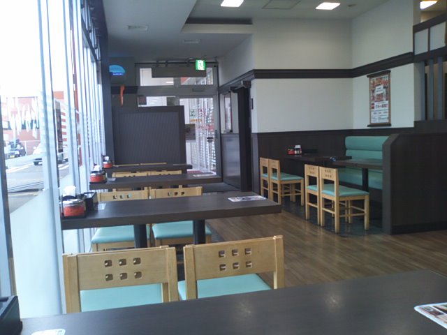 旭川には2014年現在で3つのなか卯店舗がありますが、空いていて利用しやすい、という意味ではこちらの店舗が一番だと思います。理由の一つとして、パチンコ屋さんの1Fの一角にある店舗で、目の前に巨大な駐車場があるために、なか卯だけの利用で立ち寄るのは少々面倒臭いこと、同じ国道沿いのすぐ近くに、道路脇に隣接したなか卯店舗があって、こちらを利用する方が多いことなどが挙げられると思います。個人的には空いていることが多いこちらの店舗をよく利用しますが、パチンコ屋が目立っているため、1Fになか卯があることを気付いていない方も多いように感じます。