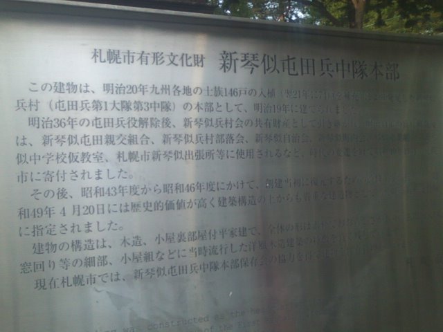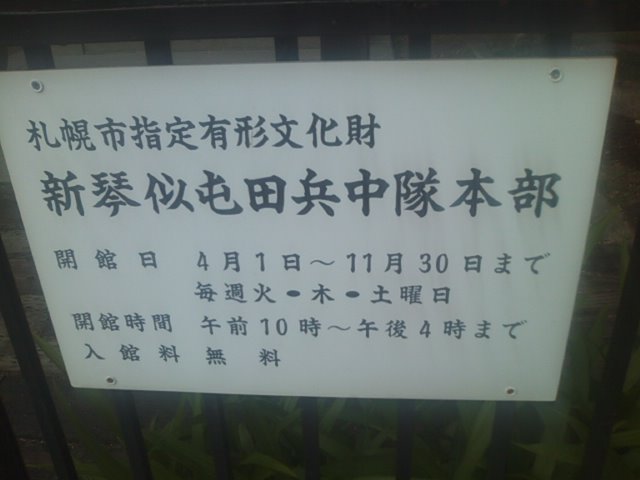 新琴似神社の境内に建つ立派な建築で、目前の大通りからは木陰に隠れている本殿と比較するとこちらの方がメインかなと思われるほど見応えがある建築です。内部も無料で公開されていますが、時間が16時までと早めに閉まってしまいますし、冬季は閉鎖されているのでご注意下さい。野幌の第二中隊本部建築との比較も面白いかと思います。