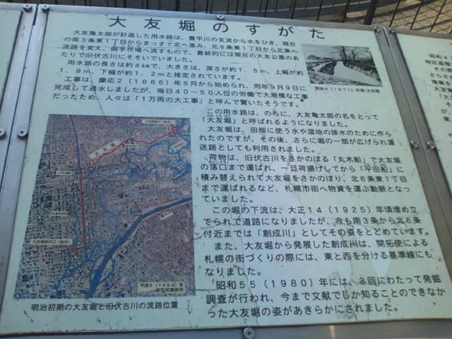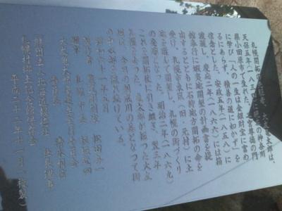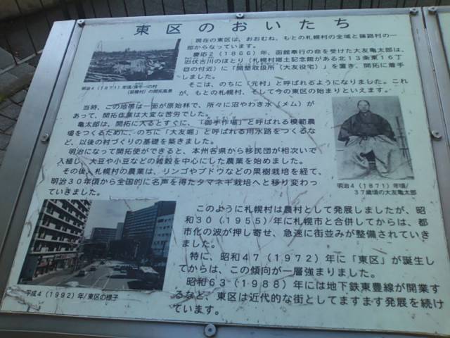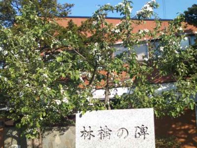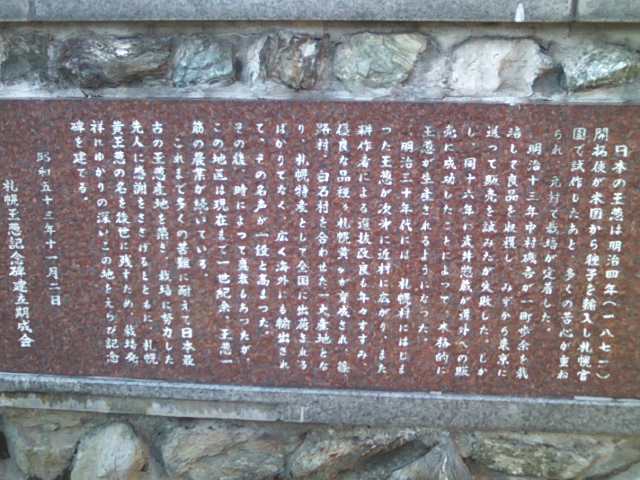 今でこそ、札幌の東区界隈は住宅地に生まれ変わりましたので、果樹園としてのリンゴ栽培をしている光景を目の当たりにすることはありませんが、かつてリンゴ栽培がおこなわれていた歴史を今に伝えているという意味で貴重な碑だと思います。私の訪問時は、やや時期が遅めに感じましたが、碑の後ろに一本だけ植えられたリンゴの木が、寂しげに白い花を咲かせていた姿がとても心に沁みました。尚、碑の裏側にはちょっと詠み辛い解説が刻まれていましたが、最後には石川啄木の「一握の砂」の一節も刻まれていました。