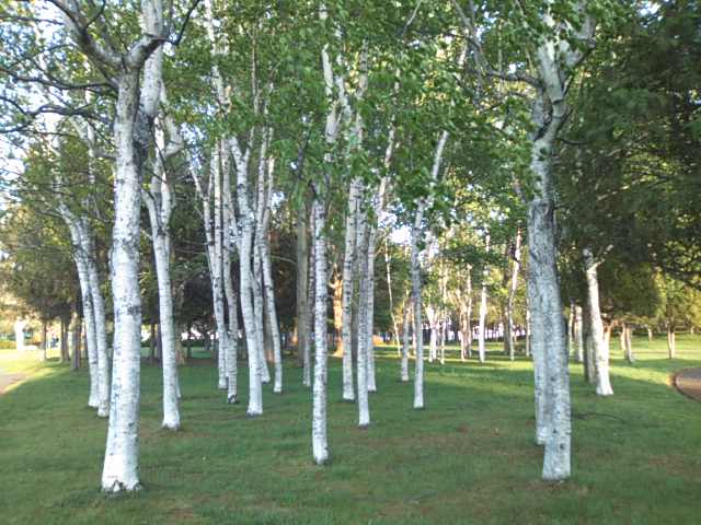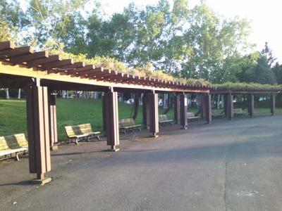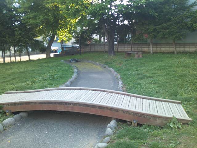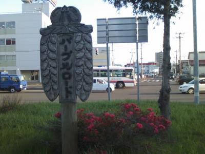 こちらの道は、札幌北東部を代表する幹線道路の一つですが、中央部に散策道が整備されていて、近隣住民の憩いの場としても機能しています。パープルの名は、散策道沿いに設置されている藤棚やライラックの木々に由来しているのかと思いますが、名前を感じながら散策するには、5月半ばだとやや早いかな、という雰囲気でした。散策道がジョギング・サイクリングコースにもなっていますので、汗を流して健康増進、という過ごし方も良いスポットかと思います。