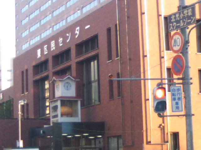 こちらのからくり時計は、東区役所の入口の上部にあり、すぐに見つけられると思います。地下鉄東豊線の駅が隣接していますので、観光客の方でもアクセスしやすいスポットです。からくり時計に関しては、大体区役所の開いている時間帯の9時~18時頃までの定時に作動しているようですが、音が結構大きいようで、夜間は作動しないのか尋ねてみたら、騒音の問題で無理、との回答が得られました。