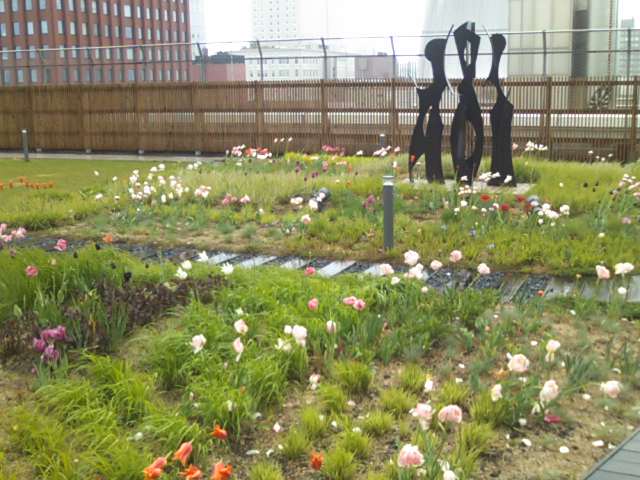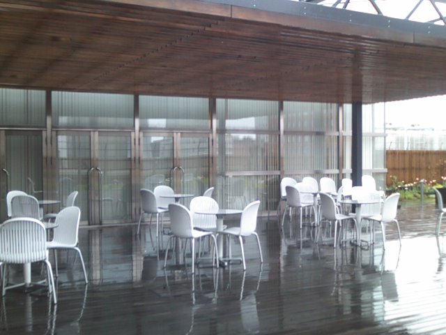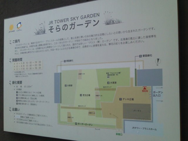 こちらのガーデンは、エスタ屋上の屋外スペースに設置されていて、私の訪問時は雨降りだったので訪れる人もなくひっそりとしていましたが、お天気の良い日だと、陽光を浴びながら、高層階の風に吹かれつつ爽やかに過ごせる場所だと思います。すぐ下の階が食堂街となっていて、昼時は混雑が酷いことも多いのですが、一つ上の階のこちらへは階段で上がるだけですが、意外と空いていますので、行列にうんざりという方は、弁当などを持参してこちらで昼食、という選択肢も風情があって良いかと思います。尚、屋外スペースですので、冬季は閉鎖されますのでご注意下さい。