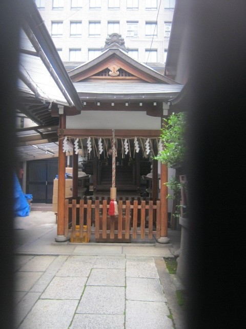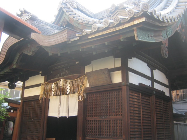 今でこそ、ビルの合間に挟まれて、全く目立たない風情ですが、元々は祇園祭の際の三基の神輿のうちの二基が安置されたという、由緒正しい場所で、今でも祇園祭の神輿還御の際に立ち寄って、神職が拝礼されているそうです。