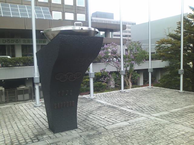 あまりにも大通界隈の雰囲気に溶け込んでいて、ここにあるのが聖火台と気付いていない札幌市民も結構多いのですが、やはり日本で最初の冬季五輪が開催された町としての札幌の偉大さを感じる上で、ここは是非訪れておきたいスポットだと思います。すぐ北側が市役所の建物で、聖火台を正面から撮影しようとすると必然的に市役所が入ってしまうアングルなのですが、それは札幌の誇りとして、必然的なレイアウトなのかもしれません。