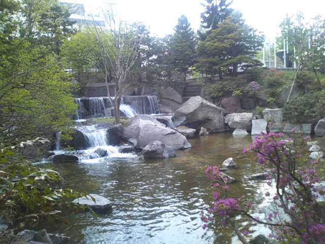 日本国内の市役所なのですから、よく考えるとどこにでもあって当たり前なのに、正式にこのように銘打たれた状態で庭園が設置されている市役所は、全国的に見ても珍しいのかもしれません。滝が流れていたり、花が咲き乱れていたり、鴨が泳いでいたりと、この空間に居ると、そこが市役所の敷地内であることを忘れてしまうような、不思議な感覚に襲われるスポットです。尚、市役所食堂からこちらの庭園が一望できますので、冬季はインドアで眺めるのが寒くなくて良いかと思います。