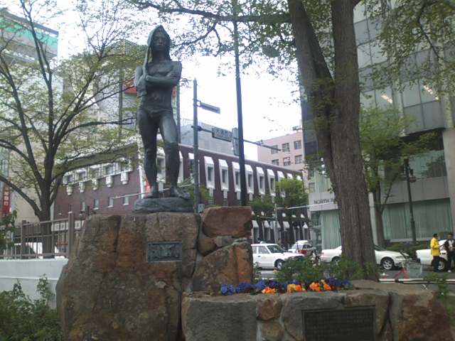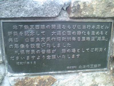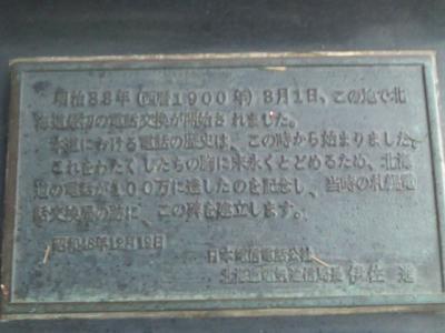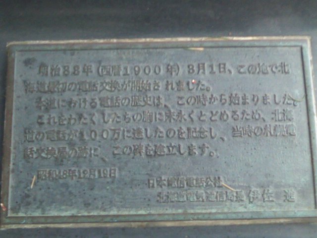 こちらのスポットは、下手をすると見逃してしまいそうな、大通公園の一角にひっそりと佇んでいる風情でした。平べったいオブジェになっているのが目立たない最大の原因ですが、携帯電話全盛の時代において、このような電話交換の歴史の礎を示すスポットは社会的な意義も大きいと思いますので、もう少し目立つ仕様にすればよいのになと、少し残念な気持ちにもなりました。