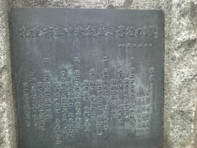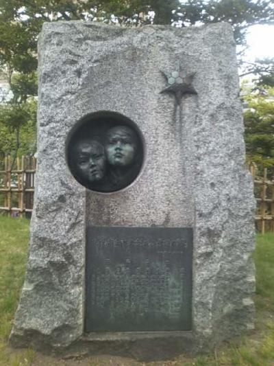 小学校の跡地に関する記念碑というのは、全国的にもよく見られると思いますが、こちらの跡地記念碑は札幌市街地のど真ん中、市役所のすぐ南側にあります。ただ、ここに描かれている二人の子供の顔がちょっと怖く、特に夜に見ると不気味さを感じます。怖いもの見たさの方は夜間の訪問をお勧め致しますが、怖がりの方は昼間にアクセスされる方が無難な記念碑です。