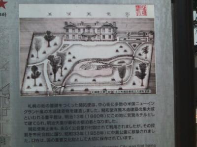 豊平館といえば、今では中島公園の代名詞のように思われている近代洋風建築を連想される方が殆どかと思いますが、元々は大通のど真ん中にあったんですね。その歴史を今に伝えるのがこちらの記念碑ですが、市民会館の南東側の少し木が繁った陰にひっそりと隠れるように建っていますので、素通りされてしまいがちな風情なのも少し寂しさを感じてしまいました。