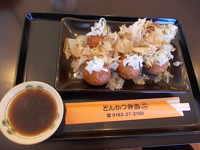 こちらのお店は、稚内市街地から宗谷岬方面に進んだ声問地区の国道238号線沿いにあります。車がないと不便な立地だと思いますが、ドライブされる際はこの辺りにあまりお店がありませんので、貴重な食事スポットとして覚えておかれるのも良いかと思います。”弁当”という肩書のお店なので、お持ち帰り専門かなと誤解しがちですが、実はきちんとした客席も用意されていて、海を見ながらお食事することも可能です。また、トンカツメニューがメインとはなりますが、実はここの隠れた名物はたこ焼きで、ノーマルなソース味もありますが、私はポン酢だれで頂く揚げたこ焼き(6個入り・300円)がよりお勧めです。