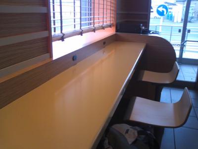 厚別通りを中心部に向かって進む中で、厚別区から白石区に入ってすぐにあるのがこちらのマクドナルド店舗です。店内は結構多くの客席があるのですが、スタンダードなタイプの客席には電源が殆ど設置されておらず、カウンタータイプの数席しかないのが少々残念に感じました。長居してPC作業したい、という方は、お尻が痛くなるのを覚悟して(?)利用する必要がある店舗といえるかと思います。