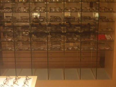 江戸小路内のショッピングモール、エスカレーターを登った所から向かって右手の最奥にあるのがこちらのお店です。空港内の眼鏡屋さんということで、興味津々でアクセスしてみましたが、アンテナショップ的な場所かと思いきや、意外なほど商品が丁寧に陳列されていたり、また、お店の歴史を感じさせてくれる写真がお店の上部に誇らしげに飾られていたりと、ショップの雰囲気としての印象はかなり好感を持つことが出来ました。