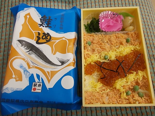 北海道内の駅弁の中でも、個人的には遠軽のかにめしと並んで好きなのが、こちらの駅で販売されている駅弁です。数種類が販売されていますが、個人的なおススメは鮭めしで、イクラや錦糸卵、鮭のほぐし身がストライプに盛られたデザインは見た目にも美しく、また昔から包装のデザインも変わっていないのが、変貌著しくて最近では興ざめすることが多い駅弁の世界の中で、とてもホッとする駅弁です。尚、駅売りの営業時間は意外と短いのですが、売り場が閉まっている時でも、お弁当が出来ていれば電話をしてすぐに持って来てくれます。心配な方は事前に予約されておくことをお勧めしますが、今までの経験では、大概現地に到着してから電話をしても、10分以内に持って来てくれます。