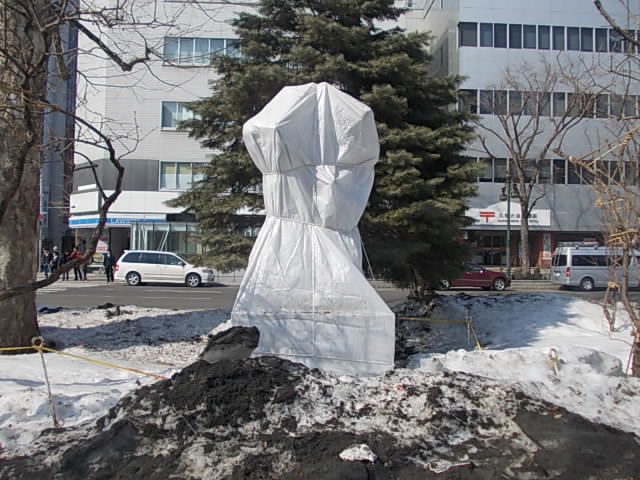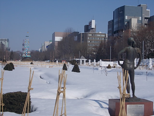 大通公園のほぼ中ほどにある、黒塗りの巨大オブジェ、という印象があるこのスポットは、知らない方が遠くから見ると、一体何ぞや?と思われるかと思います。でも札幌の子供達にはとても愛着のある場所で、芸術作品でありながら、実際に滑れる滑り台になっているので、お子様連れの方などにおススメしたいスポットです。但し、他の大通公園内の芸術作品同様、冬季は雪に埋もれていて、滑り台も使用不能となりますのでご注意下さい。