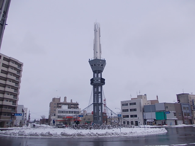 北海道第二の都市旭川には、あまり高さを誇るランドマーク的な建築は存在しませんが、そんな中、このロータリー中央にある鉄塔は、特に目新しいものでもないですが、市内を代表する建造物で、時計も設置されていて、個人的には札幌大通のテレビ塔にも匹敵する(というのは大げさか…)と思っている場所です。ただ、ロータリーとなっている関係で、地元の人間はスイスイと移動している中、特に観光シーズンには、流れに躊躇している”わ”ナンバーの車をよく見かけるスポットでもあります。旭川市内の運転に不慣れな方は、まずは交通量の少ない時間帯にここを試し走行されることをお勧め致します。