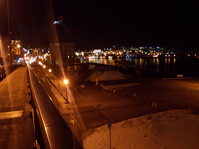 函館を代表する巨大ホテルラビスタ函館から、海沿いに歩いて赤レンガ倉庫などがあるベイエリアに向かう際に渡る橋ですが、ここはちょっと高台のようになっていて、ベイエリア全体の景観を楽しむのにも良い場所です。今回初めて夜間に訪問してみましたが、昼とは違ったライトアップされた幻想的な雰囲気が楽しめて良かったです。