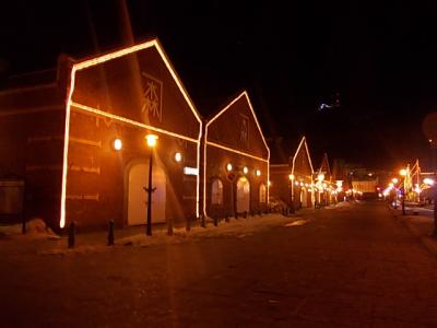 こちらの倉庫群はどちらかと言えばショップとしてのイメージが先行していて、小樽運河のように夜の風情を楽しむために歩いたことはなかったのですが、今回夜に足を運んでみると、綺麗にライトアップされていて、これまでのイメージとは違った、幻想的な風景を楽しめて良かったです。ただ、この時間はお店は殆ど営業していませんのでご注意下さい。(訪れたのがまだ冬季扱いの3月だったから、という理由もあるかもしれませんが…。)
