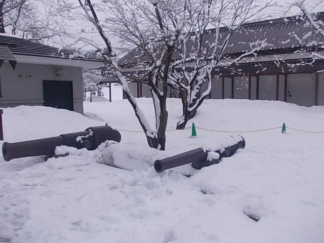 五稜郭の歴史の中で、築城(?)当時から今に残る建築は殆どありませんが、こちらは唯一残る建物と言われています。土蔵の前には戊辰戦争時に使用された大砲なども屋外展示されていて、当時の雰囲気を感じることが出来ますが、冬季は建物そのものに冬囲い的な物が設置されて、中を見られなかったのが残念でした。