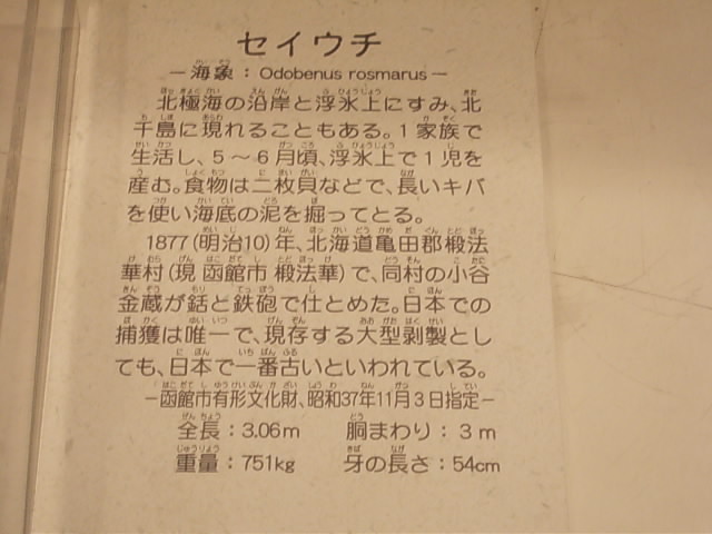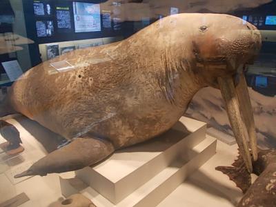 函館市内には沢山の博物館や美術館がありますので、全部を見て回るのはなかなか大変かと思いますが、立地的な利便性とコストパフォーマンス、展示内容を鑑みると、個人的に一押しなのはこちらの北洋資料館です。缶詰で有名なニチロに関する漁業史的な側面から色々な学べる場所ですが、ビジュアル的には巨大な動物剥製、体験型としては、荒波の中を進む漁業船の3分間体験(これ、かなり船酔いしました…(汗))等、なかなか楽しいです。個人的に最も驚いたのは、セイウチの剥製で、何と椴法華村(現在は函館市域となっています)の沖で実際に捕獲されたものとのことで、日本で唯一のセイウチ捕獲の実物だそうで、函館市の指定有形文化財になっていますので、是非お見逃しなく。