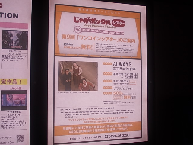 数年前に新千歳空港ターミナル内がリニューアルされてから、新しく生まれた施設の一つに映画館があります。勿論、観光客の方もいらっしゃるかと思いますが、どちらかと言えば、わざわざ遠方から北海道にやって来て、映画鑑賞に費やすという方は少ないようで、意外と出迎えや見送りなどで空港にやって来た地元民が、時間潰しに利用することも多い施設かと思います。意外とお勧めなのが、時々行われている”ワンコイン(500円)”シアターで、最新作は流石に無理だと思いますが、お得感がありますので、タイミングが合えば是非利用してみて下さい。