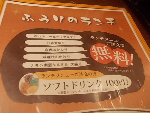 札幌駅に隣接する「パセオ」の一番西寄りにある店舗で、外からでも場所が判り易いお店です。居酒屋スタイルなので、夜間の宴会などでの利用がメインとなるかと思いますが、実はお昼のランチ営業も地元民には人気があって、お昼の12時を過ぎると、平日は結構行列が出来ますので、出来るだけ早めの利用がおススメです。尚、ランチタイムは11時から14時まで営業しています。日替わり定食で680円、ご飯やお味噌汁のお替りも出来、食後にはコーヒーも頂けます(但し、こちらはセルフサービスです。)