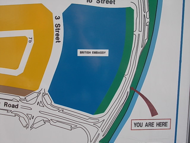 ここは観光名所、というよりは、実際の行政機関のような場所で、一応、見学させてもらえないか、入口にいたサングラス姿のジョンレノンの出来損ないみたいなおっさんに交渉してみましたが、目的を尋ねられた上でただ観光したいだけ、との旨を告げると、じゃ、駄目、みたいな感じで軽くあしらわれてしましました。クリーク河岸沿いに続くエリアから、柵越しに中を覗くことはできますので、それで我慢するしかないようです。
