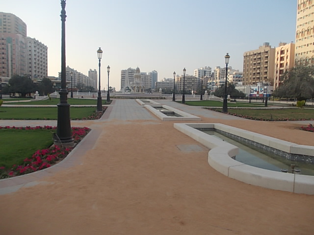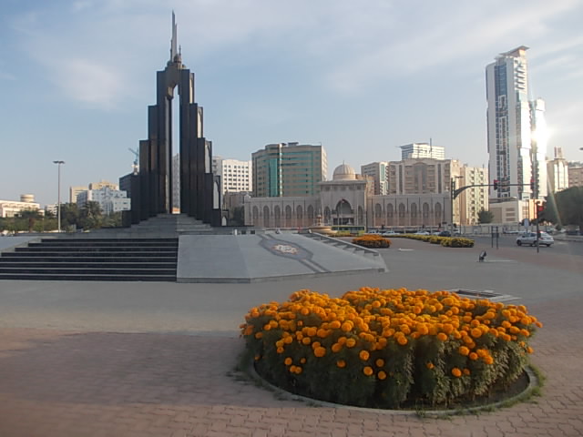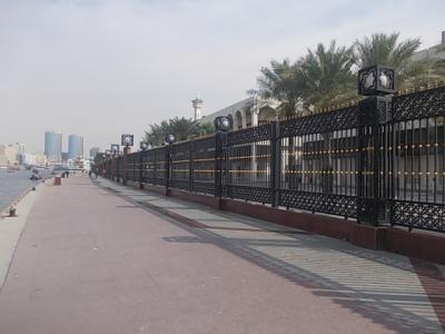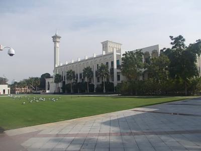シャルジャーが誇る大規模のモスクとして有名なのがこちらのキングファイサルモスクで、まずその大きさに圧倒されます。セントラルマーケット側から見ると、その手前が広々とした芝生公園のようになっているので、奥行のあるアングルで撮影することも可能ですが、モスクが巨大すぎて、なかなかどの角度から収めるのが良いのか、悩ましいモスクでもあるなと感じました。