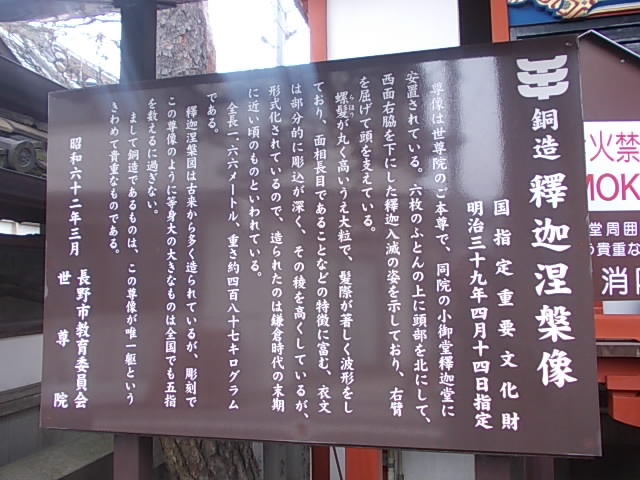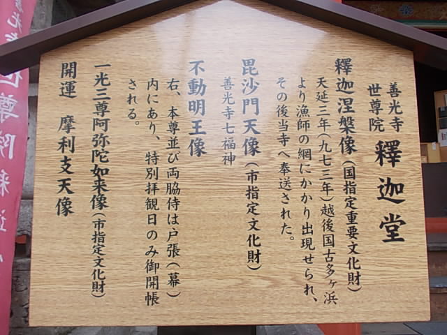 ここは現在では全国に広がっている善光寺信仰の中でも、勿論総本山となる場所ですので、全体としての見所は沢山あって、正直、ちゃんとした拝観計画を立てて廻らないと、必ず見逃してしまうスポットが生じてしまうかと思います。別項でも紹介しましたが、釈迦堂の涅槃像など、メインの参道から外れた場所にも沢山の貴重なスポットがありますので、是非この寺をご訪問される場合は、事前の情報収集を綿密に行うようにして下さい。
