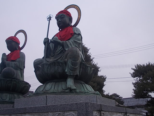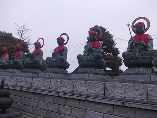 善光寺本堂に至る山門の少し手前にある、六体のお地蔵さんの総称ですが、それぞれが地獄界・餓鬼界・畜生界・修羅界・人界・天界の地蔵菩薩とされています。中でも注目なのは、向かって一番右手に鎮座していらっさはる地獄界のお地蔵様で、一刻も早く衆生を救い出そうと、足を踏み出されているお姿をされていらっしゃるのが印象的でした。