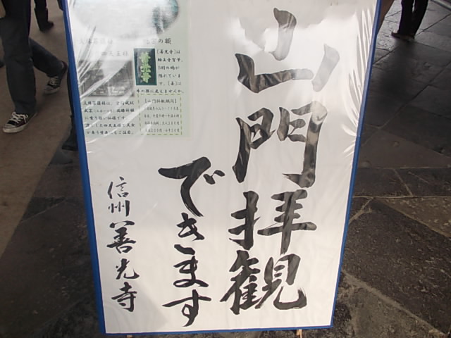 善光寺本堂の手前に威風堂々と建つのがこちらの山門で、善光寺参詣される方の殆どが通過される場所だと思いますが、実はここ、楼上に登ることができるようになっています。通年ではありませんが、お正月は登ることが可能になっていましたが、入場料が500円というのはちょっと高いかな、と感じました。