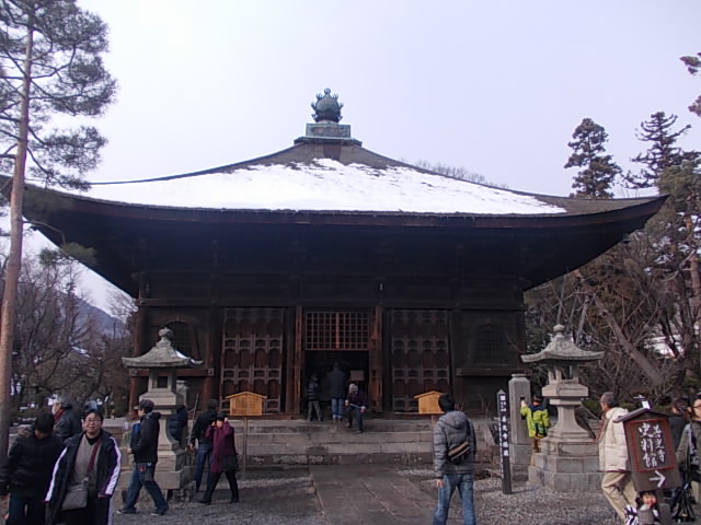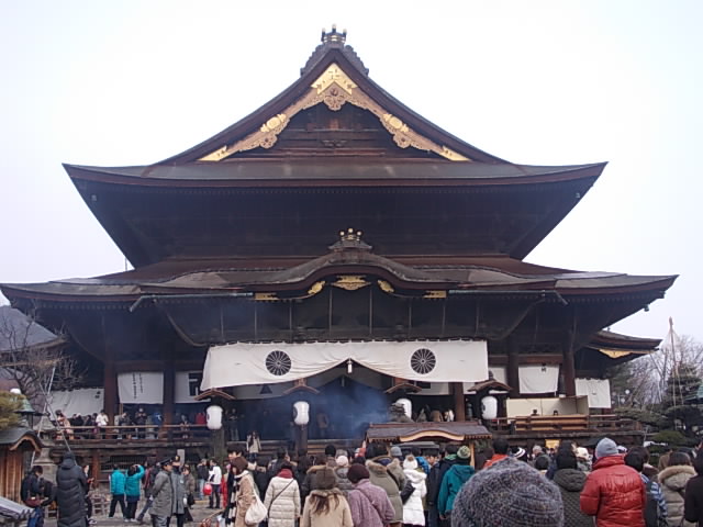 私が訪問したのは、元日でしたので、こちらの付近には特に沢山の参詣客が集まっていて、何事かと思ってよく見てみると、こちらでは色々な祈願のために、ダルマを買い求める方が多く、祈願成就の際には、両目に一筆入れた状態で奉納されるそうです。繁忙期にはゆっくりと見物することができないのは、ちょっと残念でしたが、それだけ信仰の対象としての善光寺が垣間見れる場所と言えるかと思います。