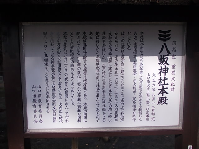 こちらのスポットは一応史跡ではありますが、現在は八坂神社の敷地内にあって、一見するとその重要性を感じるのがちょっと難しいといえるかもしれません。ただ、色々な文献などを読んでいると、歴史的には大内氏の拠点としてとても重要な場所のようですので、知識があるか否かで全く受ける印象が違う場所と言えるかと思います。是非事前に一通り学ばれた上で、こちらのスポットへのご訪問をお勧め致します。