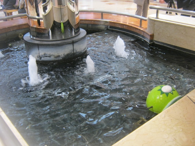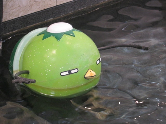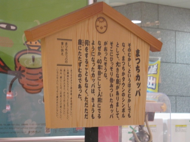 四国唯一の地下街として有名なまつちかタウンのほぼ中央にある小さな泉(?)に浮かんでいるのがこちらのカッパさんで、近くには彼がここに棲みつく(??)ようになった経緯なども記されていて、ほっこりとした気持ちになります。