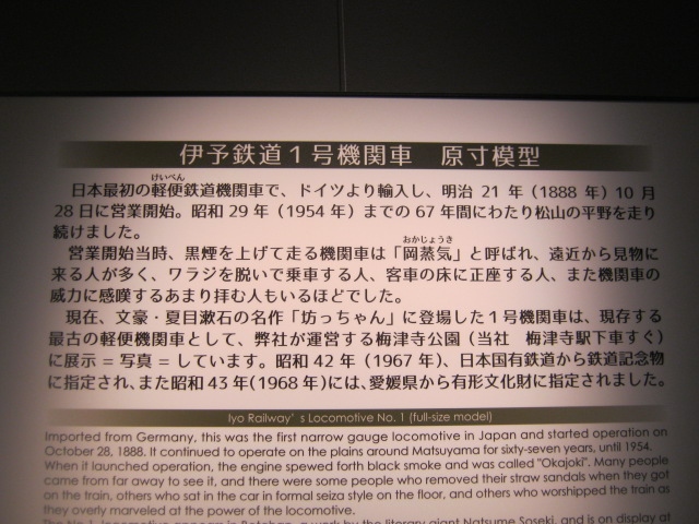 スタバの入口を普通に入っていった奥に展開されているのが何と鉄道博物館。坊ちゃん列車ミュージアムと銘打たれていますが、伊予(伊豫)鉄道の歴史を中心に、松山の鉄道の歴史が包括的に学べるようになっている秀逸のミュージアムだと思います。