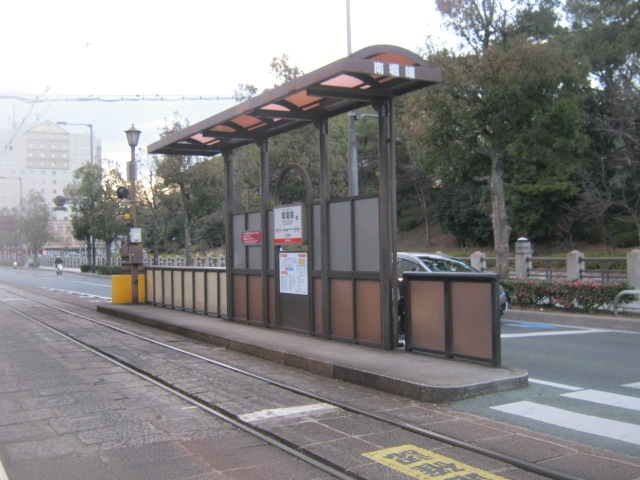 松山城の現存する外堀部分の一番東側沿いに続くのがこちらの通りで、電車通りともなっていますが、県庁の所でカーブする感じのルートなので、堀の東側としてのこの通りの距離は案外短いかなと思います。