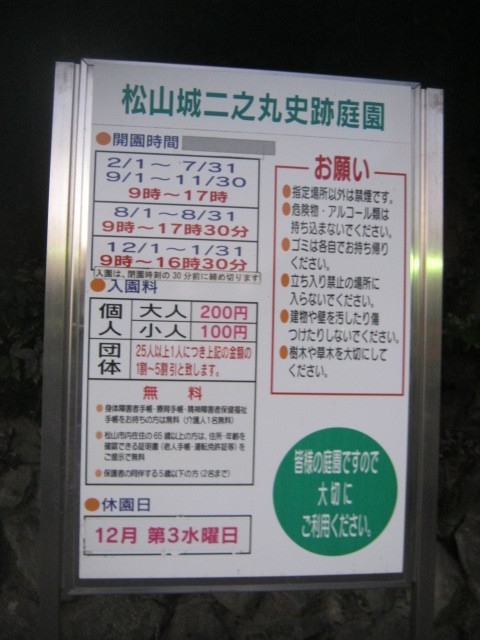 二之丸庭園に関しては、そのまま裏道が本丸に続く登山道になっていて、この登山道を少し登ったところから全貌を拝むことが出来ますので、案外お勧めです。本丸エリアと併せて見物される場合は、先に本丸にロープウェイ利用などで登って、下りルートでここに向かう、というのが効率的な観光ルートの一つといえるでしょう。- 旅行時期