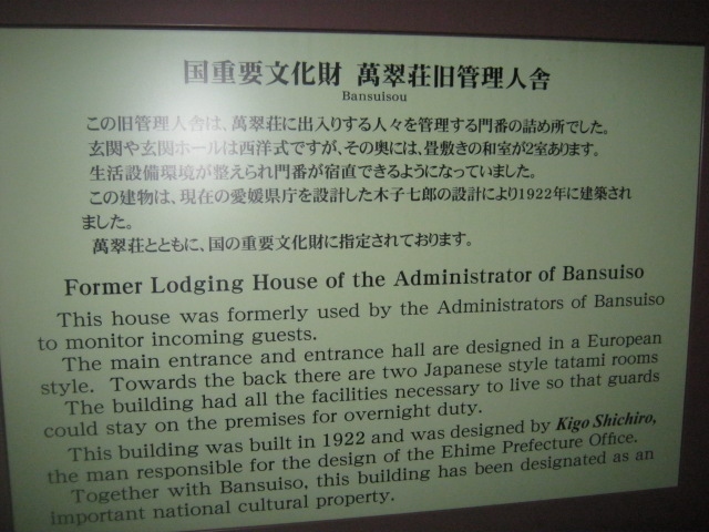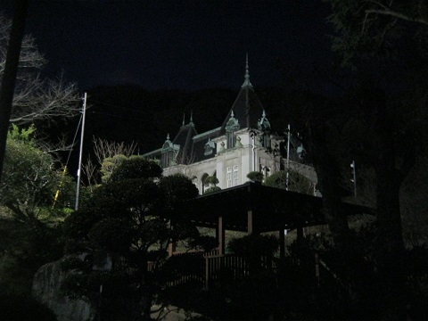 松山城の本丸側から見て南東側にある、旧松山藩主の別邸として建てられた美しい洋館です。私は時間が押してしまって、残念ながら内部見学の時間に間に合いませんでしたが、ちょうど閉館直前にゲート施錠される前に敷地内の手前に入ることが出来、ちょっと遠かったですが、遠巻きにライトアップされた洋館の姿を眺めることが出来ました。