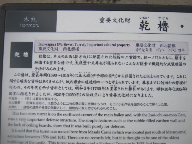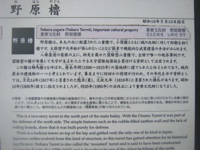 それ以外にも、天守を中心とした有料ゾーンの外側を一周しましたが、艮櫓(は復元)や乾櫓(重文)など、貴重な建造物の数々なのに、訪れる人は殆どおらず、天守だけを眺めておしまい、なんて多くの観光客を横目に、凄く得した気持ちになりました。