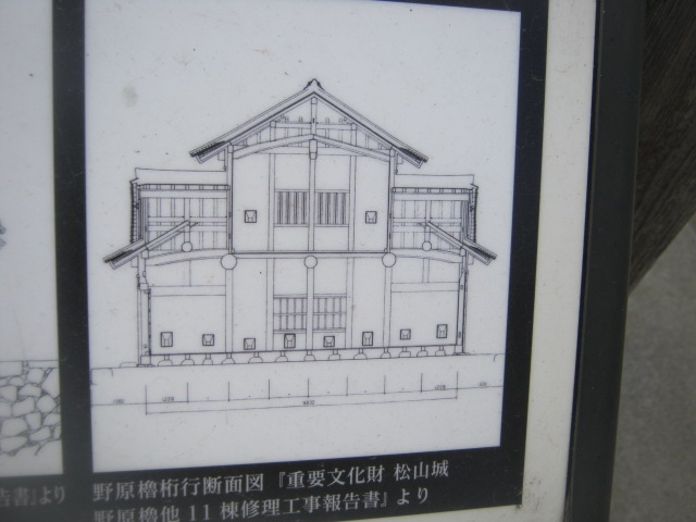 しかし、流石は天下の松山城、別に有料ゾーンに入らなくても見所が満載です。特に私が感動したのは天守閣の裏(北)側にひっそりと佇む野原櫓で、こちらは望楼天守の原型ともされる貴重な建造物として、重要文化財に指定されています。