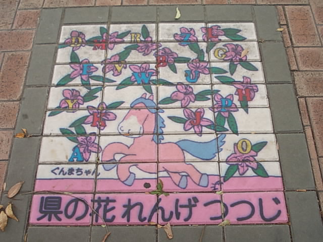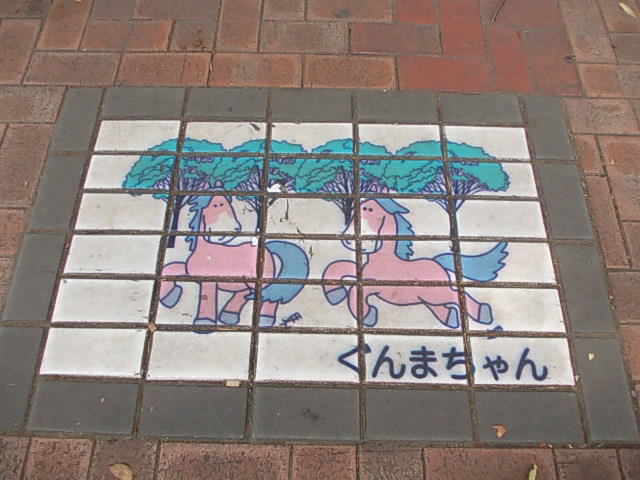 前橋の顔とも言えるメインストリートが、前橋駅北口から上毛電鉄の中央前橋駅方面へと続くこのけやき並木通りです。個人的には広瀬川を歩いた後にケヤキ並木を歩いたので、思わず仙台の定禅寺通りを思い出してしまったのですが、あちらのように中央部には残念ながら歩行帯はありません。その代わり、と言えるかどうかは解りませんが、ここの歩道は可愛らしいデザインのプレートが色々と埋め込まれていて、ついケヤキ並木よりもそちらに目を奪われてしまう楽しさがありました。群馬が誇るゆるキャラ「ぐんまちゃん」は有名だと思いますが、まさか前橋のキャラクターがいらしたとは…(汗)。