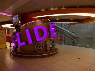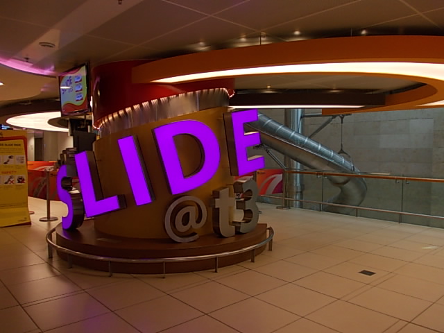 シンガポールのチャンギ国際空港は、制限エリア内(つまりトランジットエリア)の快適さは世界的に誇れる程素晴らしい充実振りだと思いますが、制限エリア外に関してみると、評判ほどは宜しくない、というのが個人的なこの空港に関する印象ですが、今回は制限エリア外に着目して、色々と見て回ってみました。私が一番気に入ったのは、ターミナル3の4Fにある”航空プラザ”的な場所で、こういう場所は得てしてモデルプレーンなどが無造作に並べられて終わり、みたいな所が多い気がしている一方で、ここの展示は何とも渋くて、チャンギ空港の歴史や航空機の機材の変遷に関する記述が、中央のオブジェ側面や壁面のガラスにプリントされているような感じで、これらを読んで回るだけで結構楽しかったです。あと、アクティブな方にお勧めなのが、滑り台でしょうか。