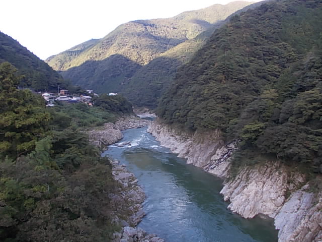 吉野川沿いの景勝地としては、大歩危とセットで扱われることの多い小歩危ですが、実際に現地を訪れてみると、大歩危のように観光地化されていない印象で、普通に自然の渓谷美を味わうという意味では、個人的にはこちらの方が良かったです。尚、私のお勧めは、JR小歩危駅から徒歩5分程度の距離にある赤川橋からの眺めです。橋自体も吊橋風でちょっとスリリングでした。