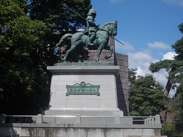 高知城のお殿様、といえば、言わずと知れた山内一豊ですが、実は銅像に関しては、比較的新しく造られた物ですので、日本一そのままの姿を残していると呼ばれる天守閣エリアへの配慮からか、少し離れた場所に建っているのが印象的でした。文学館や図書館の入口に建っていますので、場所的にはこちらを目印にされると良いかと思います。