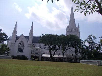 ここのカテドラルは、ラッフルズホテルやクラークキーなど、シンガポール観光の中心地とも言えるエリアのすぐ近くにあり、かなり広い敷地内に建っていますので、存在感もたっぷりでした。緑の芝生と青空に挟まれた白亜の教会建築の美しさを楽しむのも良いですが、ビジターセンターのような場所で色々と案内も聞くことが出来ますので、お時間があれば、ちょっと係の方を捕まえて、詳しく聞いてみて下さい。