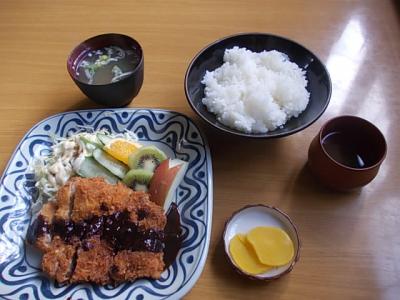 士別といえば、サフォーク羊を連想される方が多いかと思いますが、市街地を歩いていると意外とサフォークを提供しているお店は少なく、地元の方はもっと普通の物をよくお召し上がりになっているなという印象を受けます。こちらのお店では肉料理をメインに沢山の定食メニューや丼、ステーキなどが提供されていました。尚、お店の看板メニューは味噌カツ定食とのことで、こちらだけ単独のショーケースでディスプレイしている自慢の料理のようでした。サラダにフルーツが盛られていたのがちょっと嬉しかったです。(800円)
