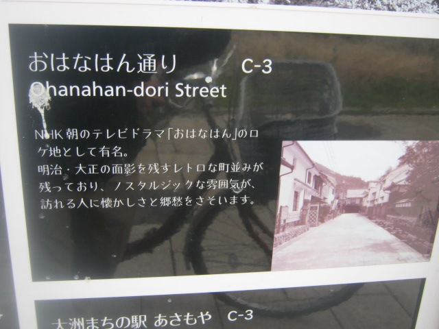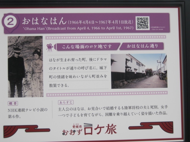 大洲という町は、昔ながらの風情が色濃く残る街並みがロケ地としても人気となっているのですが、その中でも一番有名なのがこちらのおはなはん通りかなと思います。私はドラマとしてはリアルタイム世代ではないので、ロケ地としての感動は薄かったですが、休憩所も設置されていて、脇には水路があったりするのも、街並みとして長年きちんと定着してきた、ある意味、”ロケセット”としての街並みでない自然な風情が気に入りました。