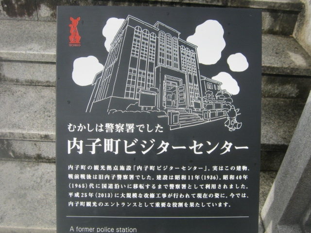 内子の町並み保存地区に至る途上で、やたらと立派な建物があるなと立ち寄ったのがこちらでした。元々は警察署として使用されていた建物だそうで、威風堂々たる姿に圧倒されましたが、現在はビジターセンターとして運用されています。生憎訪問した木曜日が休館日だったので、今回は内部の様子は入口から眺めるだけで通過しました。