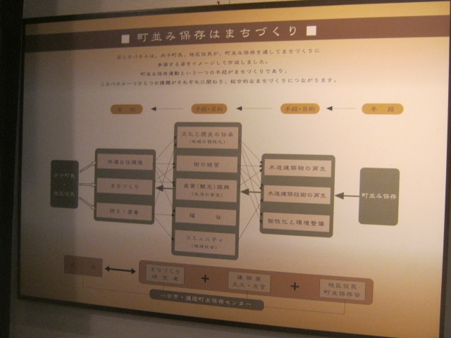 内子の町並み保存地区は、明治時代にタイムスリップしたかのような情緒が味わえる素敵な場所ですが、これだけの町並みを維持するのはやはり大変なことなんだなあと、色々と考える機会を得るのに適した施設がこちらです。まず入口にある街並み全体を再現したジオラマ模型が非常に見ごたえありますので、一通り歩いてからここに来ると、見てきた建物群などを思い返しながら”復習”することもできてお勧めです。